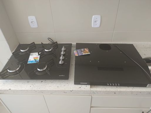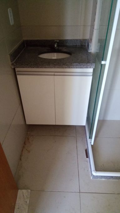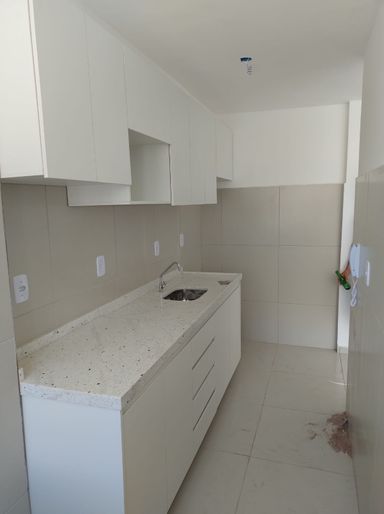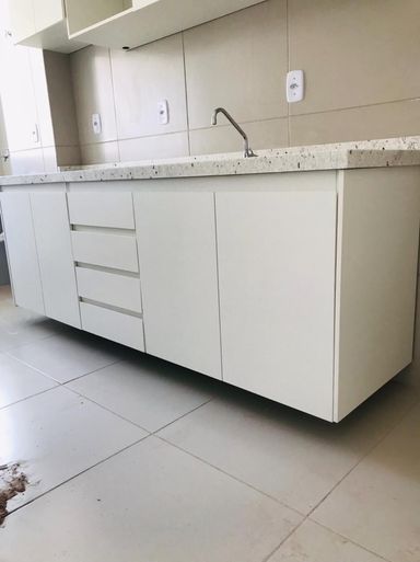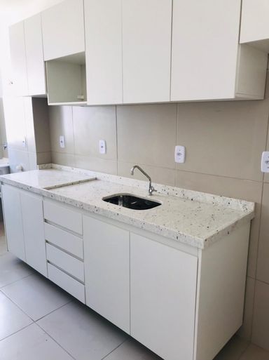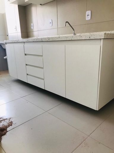 Cozinha e banheiro com móveis planejados