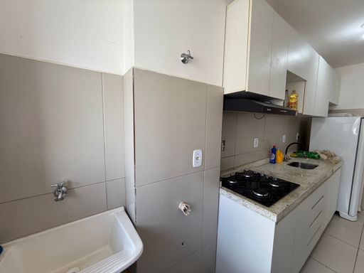 Cozinha e banheiro com móveis planejados