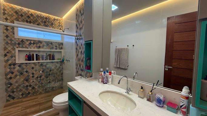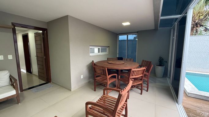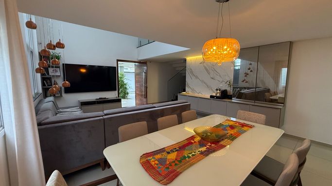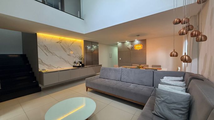 Apresentamos esta excelente casa de alto padrão, totalmente mobiliada, pronta para morar, localizada em um dos condomínios mais valorizados da região.